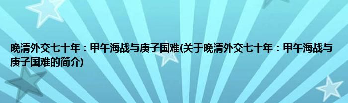 本文关于晚清外交七十年:甲午海战与庚子国难的简介就讲解完毕,希望对大家有所帮助。