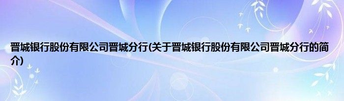 本文关于晋城银行股份有限公司晋城分行的简介就讲解完毕,希望对大家有所帮助。