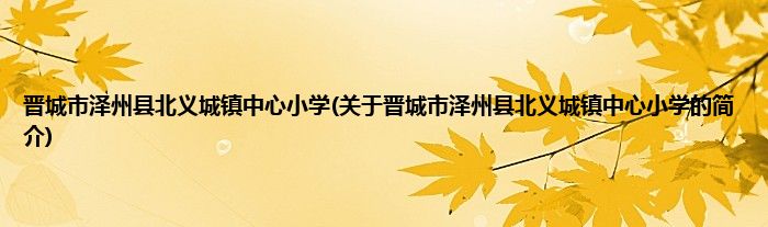 本文关于晋城市泽州县北义城镇中心小学的简介就讲解完毕,希望对大家有所帮助。
