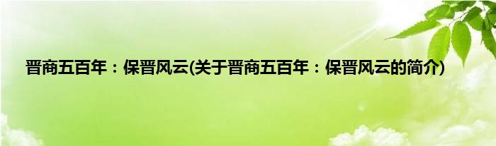本文关于晋商五百年:保晋风云的简介就讲解完毕,希望对大家有所帮助。
