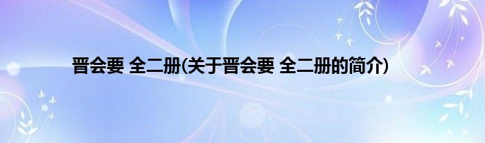 本文关于晋会要 全二册的简介就讲解完毕,希望对大家有所帮助。