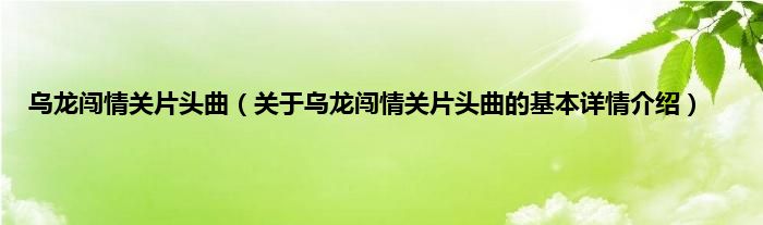 本文关于乌龙闯情关片头曲的基本详情介绍就讲解完毕,希望对大家有所帮助。