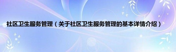 社区卫生服务管理(关于社区卫生服务管理的基本详情介绍)