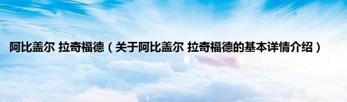 阿比盖尔 拉奇福德(关于阿比盖尔 拉奇福德的基本详情介绍)