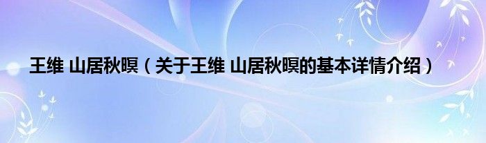 本文关于王维 山居秋暝的基本详情介绍就讲解完毕,希望对大家有所帮助。