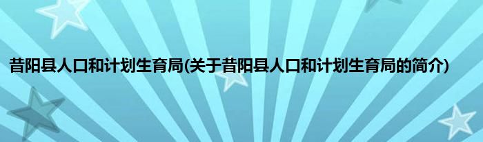 本文关于昔阳县人口和计划生育局的简介就讲解完毕,希望对大家有所帮助。