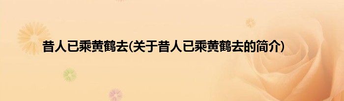 本文关于昔人已乘黄鹤去的简介就讲解完毕,希望对大家有所帮助。