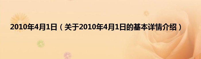 本文关于2010年4月1日的基本详情介绍就讲解完毕,希望对大家有所帮助。