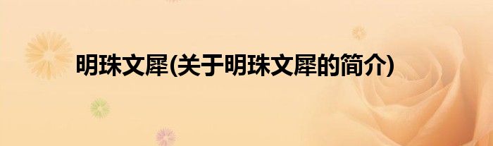本文关于明珠文犀的简介就讲解完毕,希望对大家有所帮助。