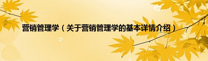 本文关于营销管理学的基本详情介绍就讲解完毕,希望对大家有所帮助。