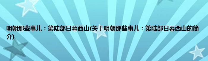 本文关于明朝那些事儿:第陆部日暮西山的简介就讲解完毕,希望对大家有所帮助。