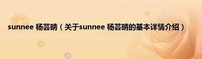 本文关于sunnee 杨芸晴的基本详情介绍就讲解完毕,希望对大家有所帮助。