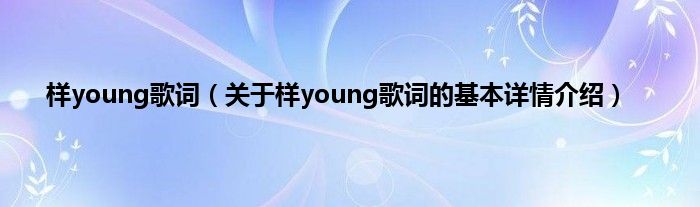 本文关于样young歌词的基本详情介绍就讲解完毕,希望对大家有所帮助。
