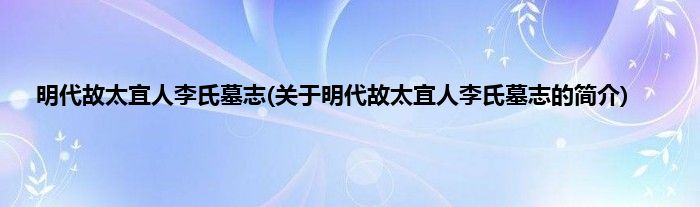 本文关于明代故太宜人李氏墓志的简介就讲解完毕,希望对大家有所帮助。
