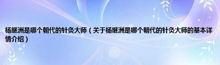 本文关于杨继洲是哪个朝代的针灸大师的基本详情介绍就讲解完毕,希望对大家有所帮助。