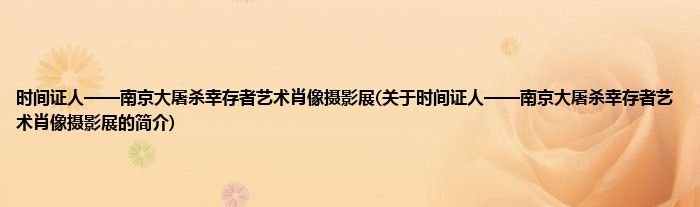本文关于时间证人——南京大屠杀幸存者艺术肖像摄影展的简介就讲解完毕,希望对大家有所帮助。