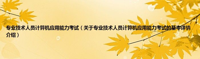 本文关于专业技术人员计算机应用能力考试的基本详情介绍就讲解完毕,希望对大家有所帮助。