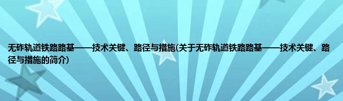本文关于无砟轨道铁路路基——技术关键、路径与措施的简介就讲解完毕,希望对大家有所帮助。
