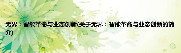 大家好,无界:智能革命与业态创新,关于无界:智能革命与业态创新的简介很多人还不知道,现在让我们一起来看看吧!