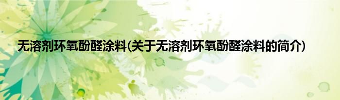 无溶剂环氧酚醛涂料(关于无溶剂环氧酚醛涂料的简介)