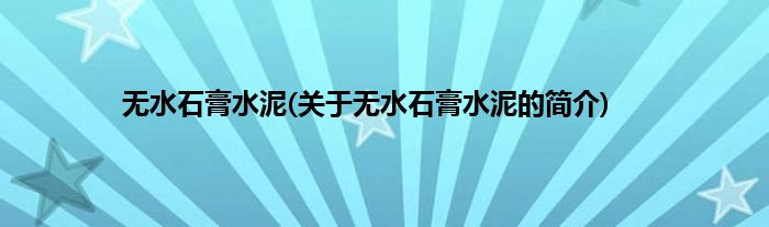 大家好,无水石膏水泥,关于无水石膏水泥的简介很多人还不知道,现在让我们一起来看看吧!