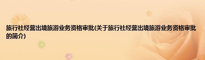 1、 旅行社经营出境旅游业务资格审批是旅行社申请经营出境旅游业务的资格,主要从事出境旅游业务的工作。