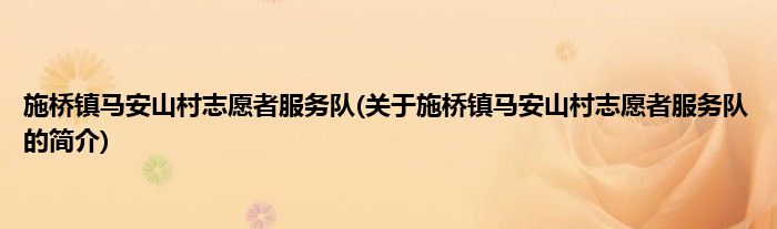 本文关于施桥镇马安山村志愿者服务队的简介就讲解完毕,希望对大家有所帮助。
