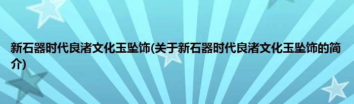 本文关于新石器时代良渚文化玉坠饰的简介就讲解完毕,希望对大家有所帮助。