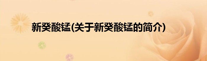 大家好,新癸酸锰,关于新癸酸锰的简介很多人还不知道,现在让我们一起来看看吧!