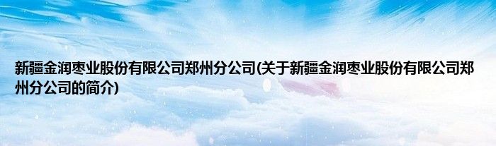 大家好,新疆金润枣业股份有限公司郑州分公司,关于新疆金润枣业股份有限公司郑州分公司的简介很多人还不知道,现在让我们一起来看看吧!