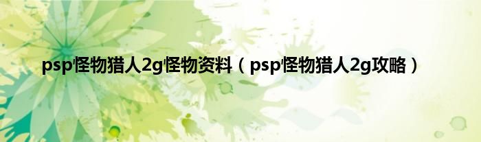 大家好,小问来为大家解答以上问题。psp怪物猎人2g怪物资料,psp怪物猎人2g攻略这个很多人还不知道,现在让我们一起来看看吧!