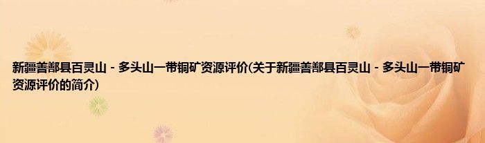 本文关于新疆善鄯县百灵山-多头山一带铜矿资源评价的简介就讲解完毕,希望对大家有所帮助。
