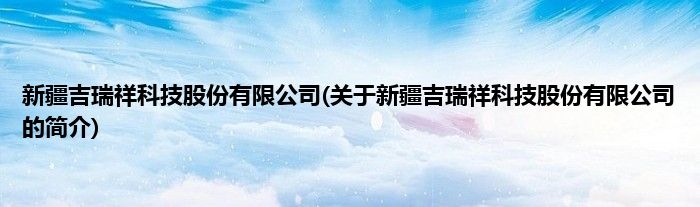 新疆吉瑞祥科技股份有限公司(关于新疆吉瑞祥科技股份有限公司的简介)