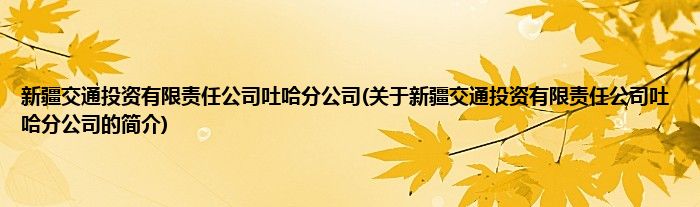 本文关于新疆交通投资有限责任公司吐哈分公司的简介就讲解完毕,希望对大家有所帮助。