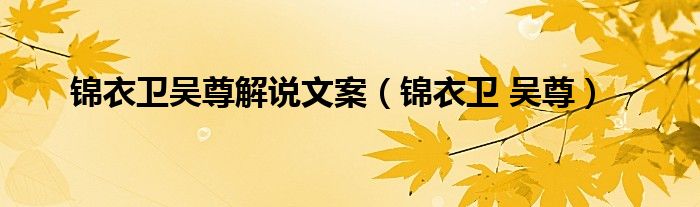 以上就是【锦衣卫吴尊解说文案,锦衣卫 吴尊】相关内容。