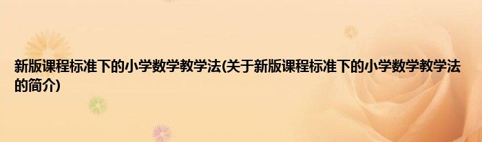 大家好,新版课程标准下的小学数学教学法,关于新版课程标准下的小学数学教学法的简介很多人还不知道,现在让我们一起来看看吧!