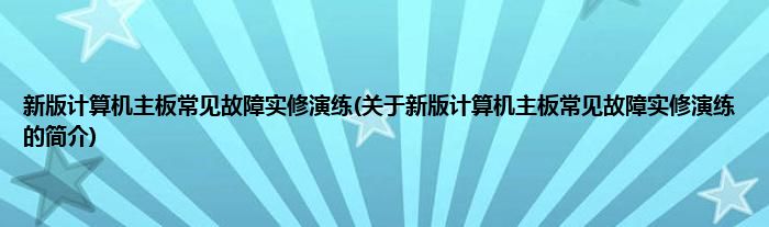 大家好,新版计算机主板常见故障实修演练,关于新版计算机主板常见故障实修演练的简介很多人还不知道,现在让我们一起来看看吧!