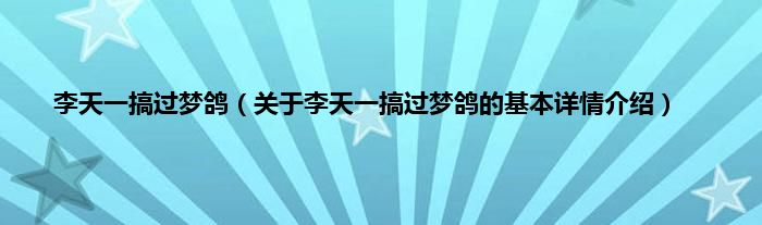本文关于李天一搞过梦鸽的基本详情介绍就讲解完毕,希望对大家有所帮助。