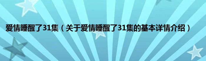 本文关于爱情睡醒了31集的基本详情介绍就讲解完毕,希望对大家有所帮助。