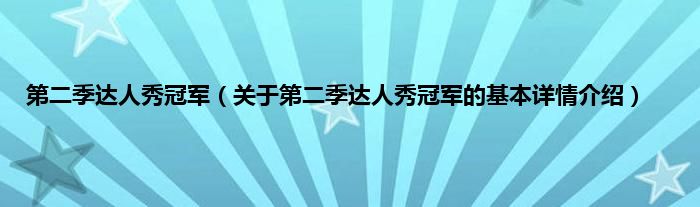 本文关于第二季达人秀冠军的基本详情介绍就讲解完毕,希望对大家有所帮助。