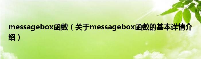 本文关于messagebox函数的基本详情介绍就讲解完毕,希望对大家有所帮助。