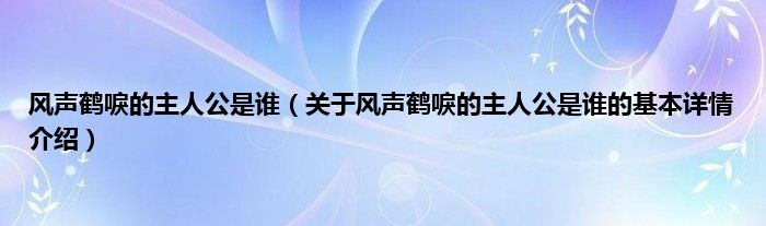本文关于风声鹤唳的主人公是谁的基本详情介绍就讲解完毕,希望对大家有所帮助。