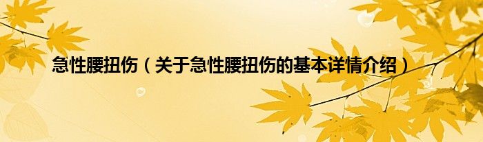 本文关于急性腰扭伤的基本详情介绍就讲解完毕,希望对大家有所帮助。