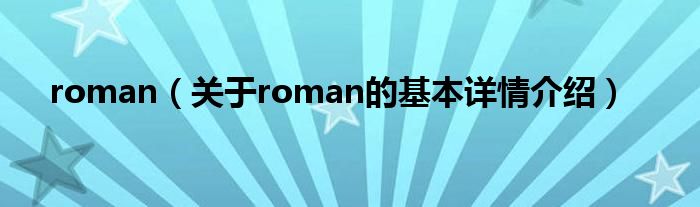本文关于roman的基本详情介绍就讲解完毕,希望对大家有所帮助。