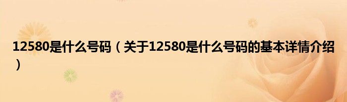 本文关于12580是什么号码的基本详情介绍就讲解完毕,希望对大家有所帮助。