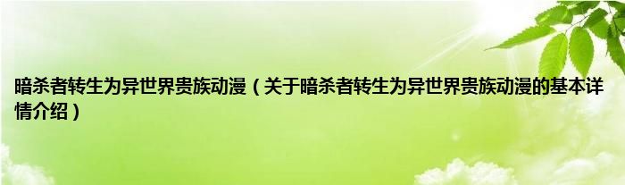 本文关于暗杀者转生为异世界贵族动漫的基本详情介绍就讲解完毕,希望对大家有所帮助。