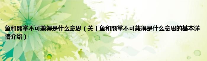本文关于鱼和熊掌不可兼得是什么意思的基本详情介绍就讲解完毕,希望对大家有所帮助。