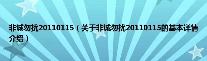 大家好我是小蝌蚪,非诚勿扰20110115,关于非诚勿扰20110115的基本详情介绍很多人还不知道,那么现在让我们一起来看看吧!