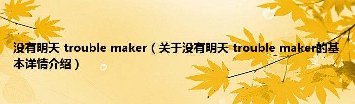 本文关于没有明天 trouble maker的基本详情介绍就讲解完毕,希望对大家有所帮助。
