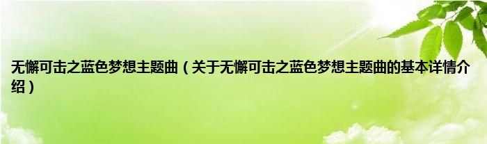 本文关于无懈可击之蓝色梦想主题曲的基本详情介绍就讲解完毕,希望对大家有所帮助。